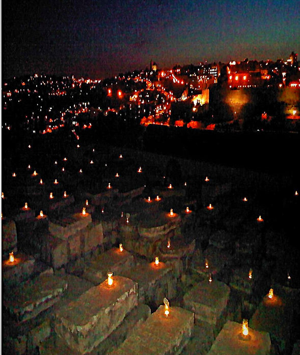 Perched on a hill in Jerusalem, the Mount of Olives cemetery (over 70,000 graves) lacks lighting, constituting a black hole, a visual gap within the nocturnal landscape of Jerusalem. In this performance, I scripted the relationship between the dead and the living through the relief of the landscape's topography by lighting (igniting two thousand candles) and the recitation by Or Avishai of names inscribed on the steles as well as names read by Rawan Hossin of the inhabitants of the villages of "Silwan", "Djebel and Zeitung", "Hassel Hamoud", "El Tur" and "El Eizariya". The video is constructed on a single long take to establish a visual and auditory continuity between the cemetery and its surrounding environment (Mount of Olives, separation wall, view of the old city, etc).